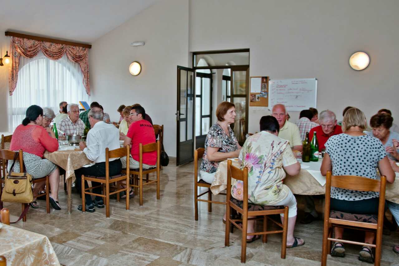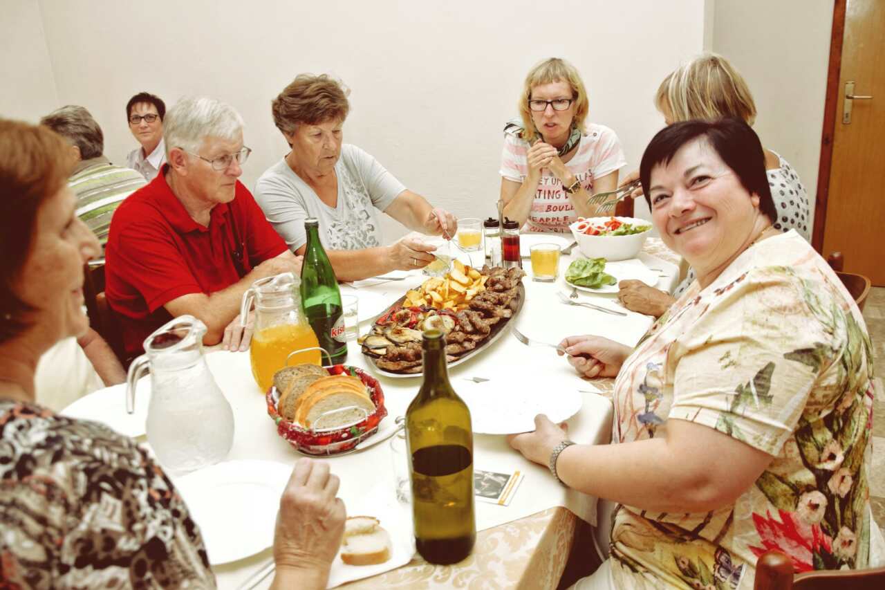 U klimatiziranom restoranu posebno opremljenom za goste Pansiona Nikola okusite čari obiteljske kuhinje. Hrana koja se s posebnom pažnjom priprema okrijepit će vas prije vašega uspona na Brdo Ukazanja i na brdo Križevac.